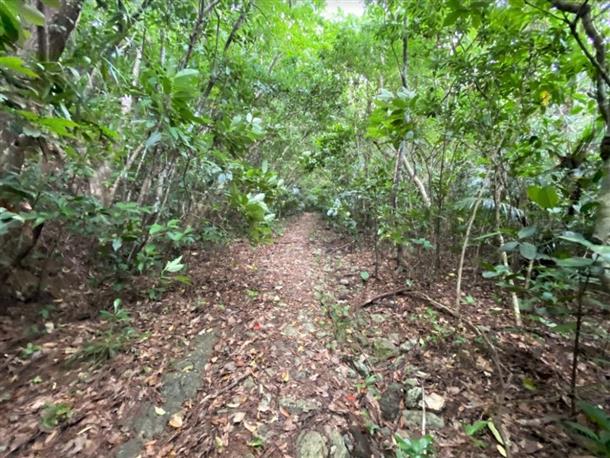 ※ハイキングルートではなく蔓や枝が飛び出た山道を1km歩きます。整備されていないアップダウンや、段差1メートル以上の石を乗り越え、亜熱帯の天然フィールドで森林浴をします。膝下程度は濡れます。