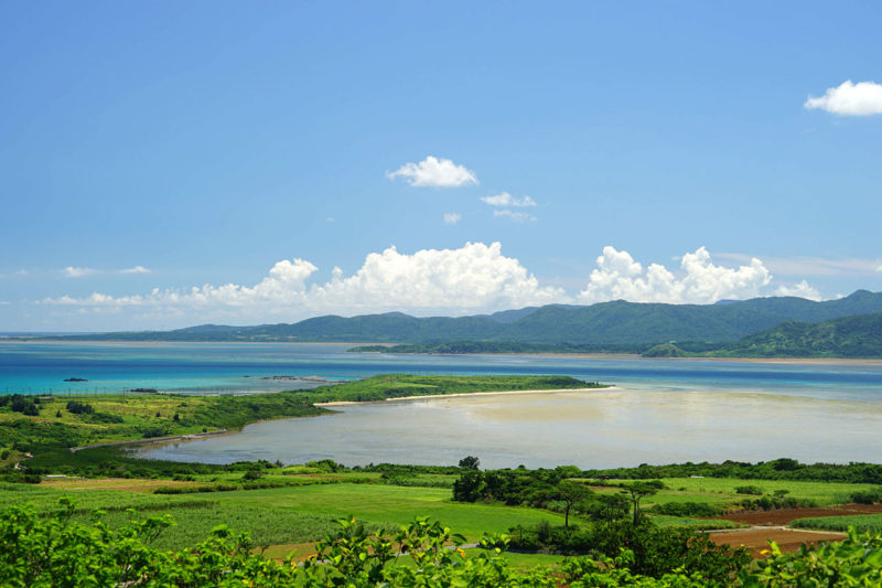 サトウキビ畑と牧場が広がり、海抜99mの大岳からはエメラルドグリーンの海と八重山諸島の美しい島々♪